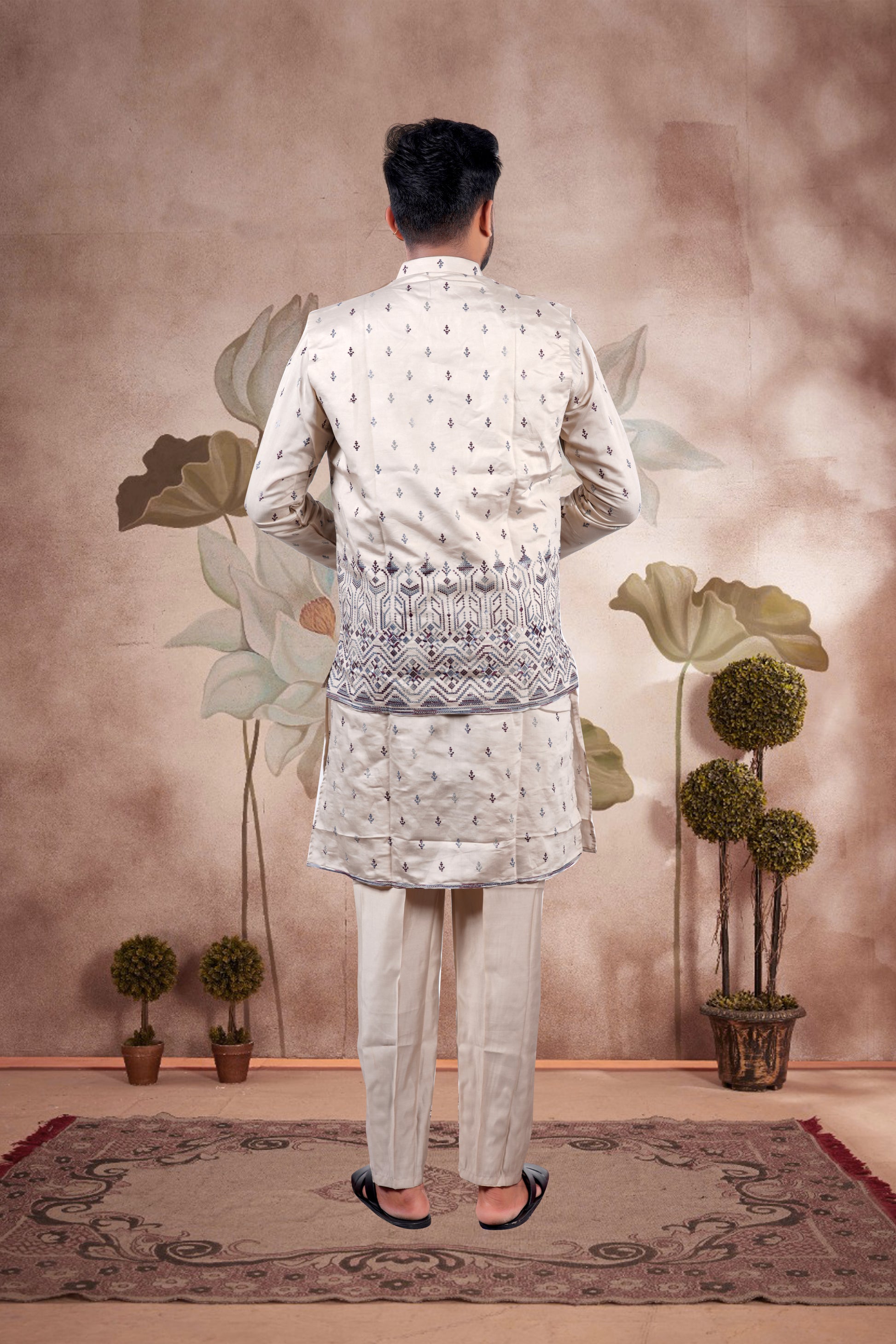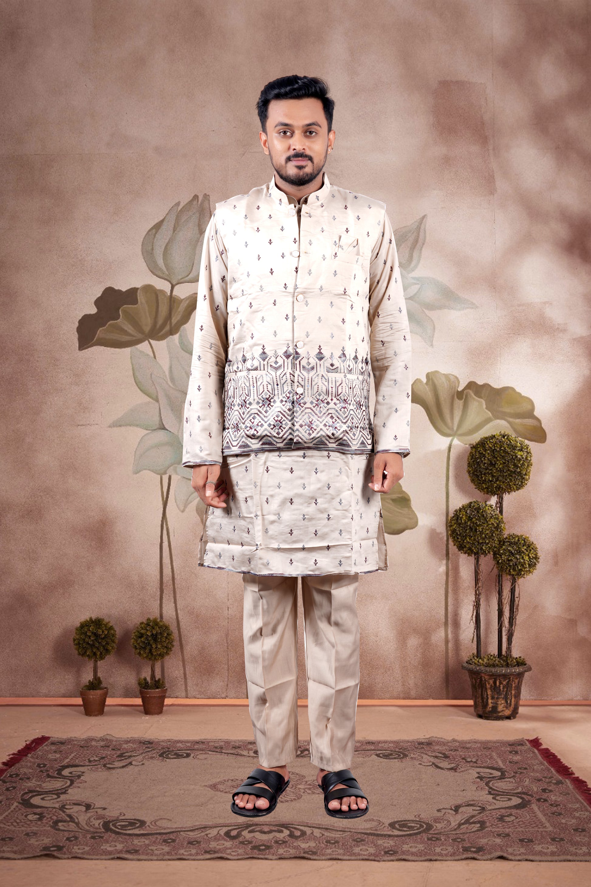 Beige Embroidered Kurta Set with Jacket – Regal Wedding Edition