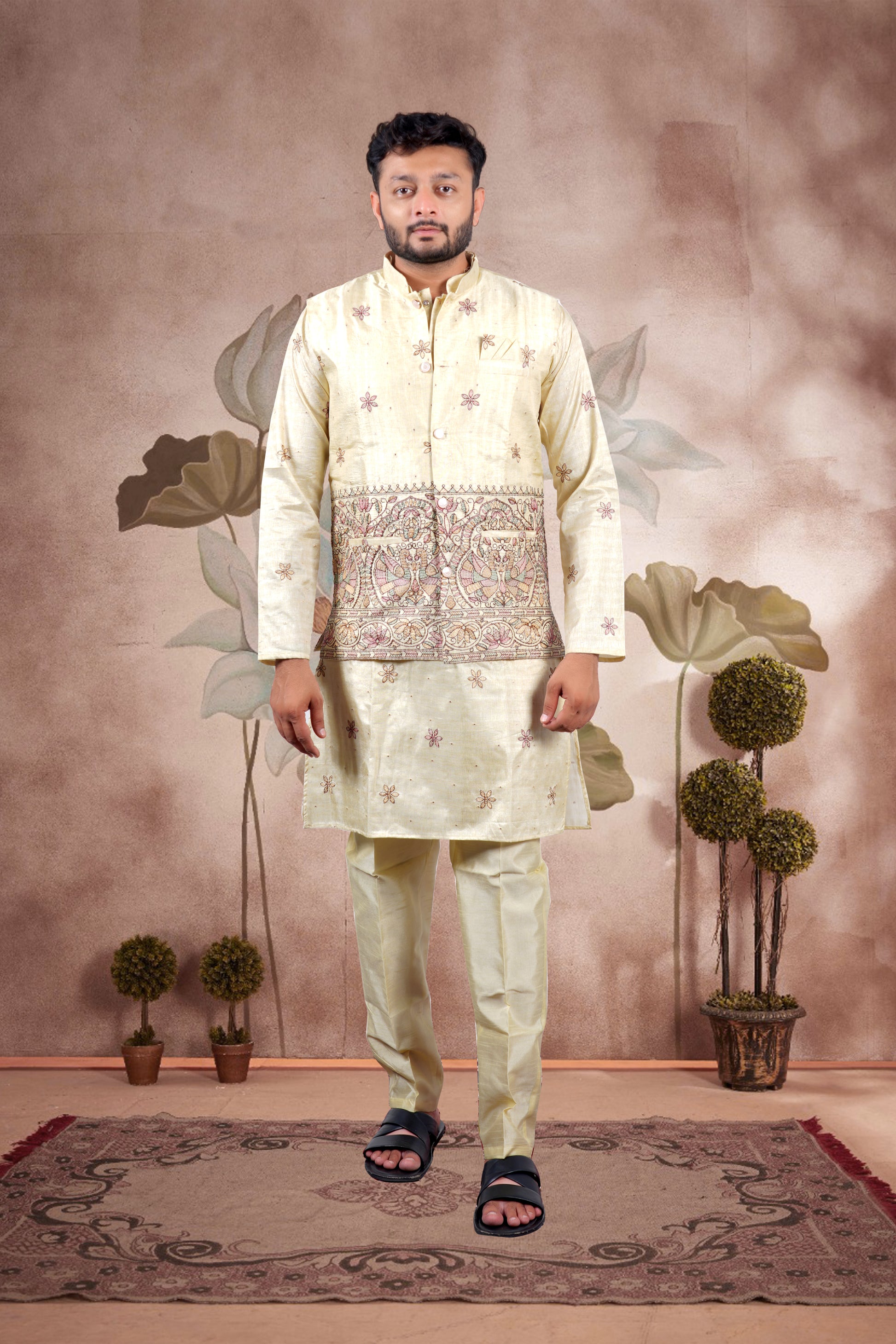 Package Content: 1 Kurta, 1 Bottom, 1 Jacket (Set of 3)